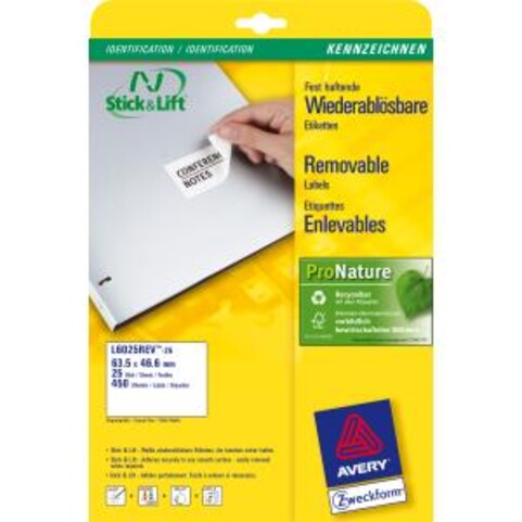 Wiederablösbare Etiketten für Laser, Ink-Jet und Kopierer. FSC-zertifizierte Etiketten, bei welchen das Etiketten-Obermaterial aus vorbildlich bewirtschafteten Wäldern besteht.