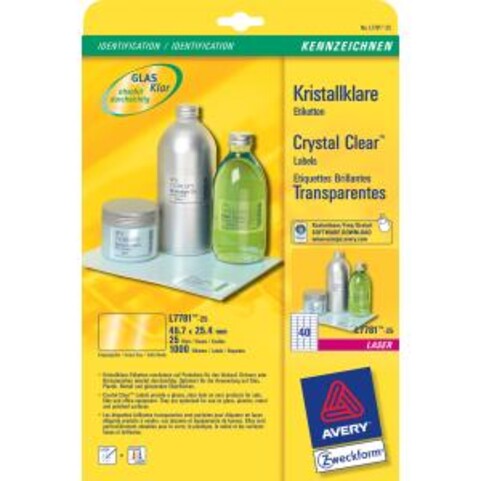 Optimal geeignet für spiegelnde Oberflächen wie Glas oder glänzende Produktverpackungen, speziell für hochwertige Produktversiegelungen, Beschriftungen sehen auf glänzenden Oberflächen aus wie direkt bedruckt, geeignet für Laser- und Farblaser-Drucker, Packung mit 25 Bogen A4.